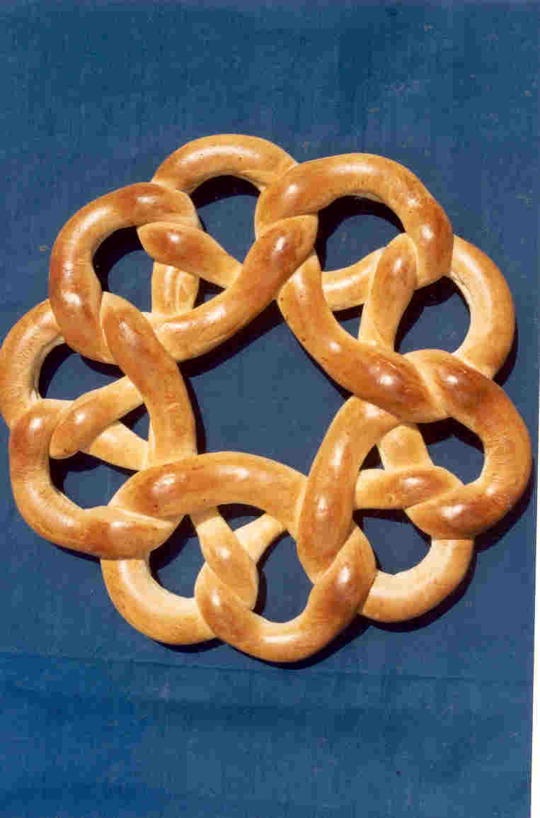 In de Spaanse provincie Galicië wordt een huwelijksgebak gemaakt, dat de vorm heeft van een ineengestrengeld paar, waarvoor de familie van het bruidspaar het meel levert.