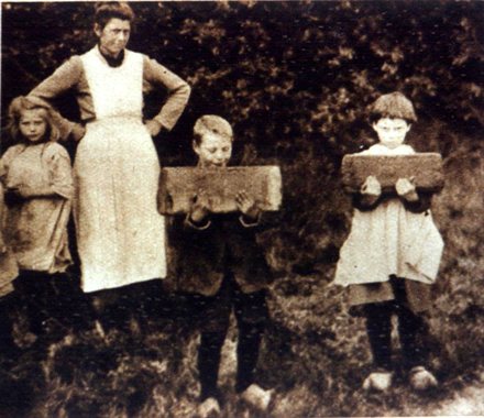 ‘Tegen tweeën in de namiddag komt daar uit een roggepaadje een oude boer geschreden. Op zijn schouder draagt hij een stevige knuppel, waarvan het einde halverwege in een massief roggebrood is gestoken. Achter de boerrigter komt nog een dergelijke verschijning en bijna tegelijkertijd komen van her en der in langzame, zware tred boeren opdagen. Maar al langer dan een uur tevoren zitten daar aan de wegverbreding een zes- of achttal oude en armelijk geklede vrouwen met tal van kinderen en kleinkinderen te wachten op wat komen gaat. In de gestadig vallende motregen hebben ze de ouderwetse, gescheurde regenschermen opgestoken en zitten genoeglijk zij aan zij te kakelen op de nattige mothoop, terwijl de kinderschaar wat speelt met kruikarren en kreupele kinderwagens.'